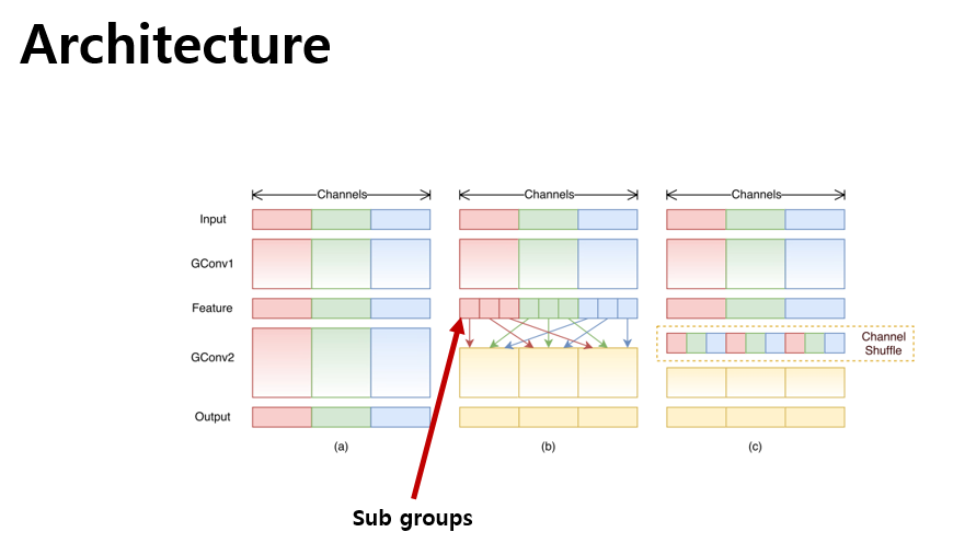 √ 위의 그림은 shuffle unit 으로 이러한 구조를 반복하여 쌓는 구조로 설계했다.